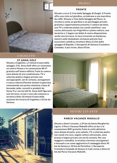 Ottima posizione, con vista mozzafiato; appartamento molto comodo e ben organizzato. Organizzazione di eventi serali gratuiti a favore degli ospiti della struttura