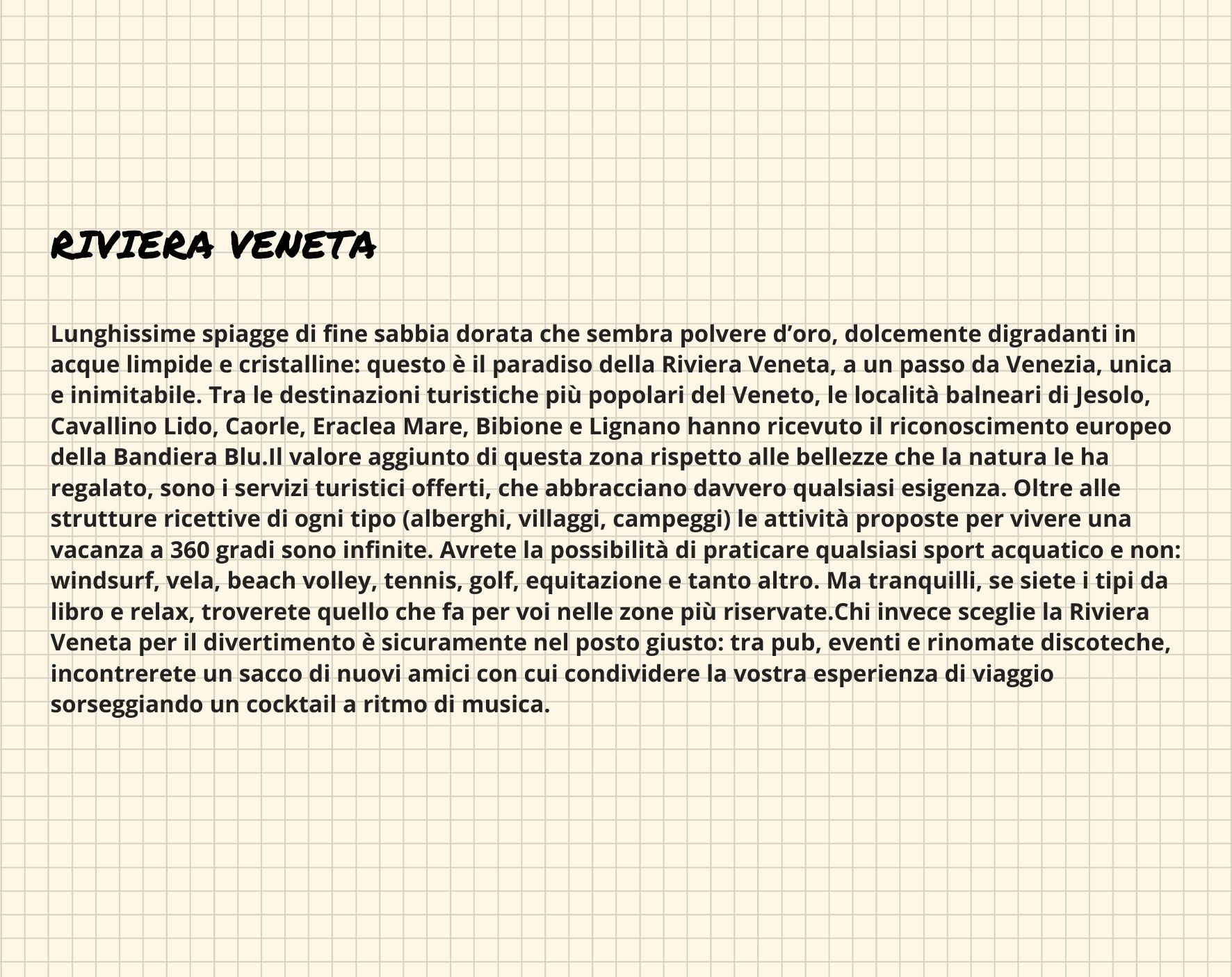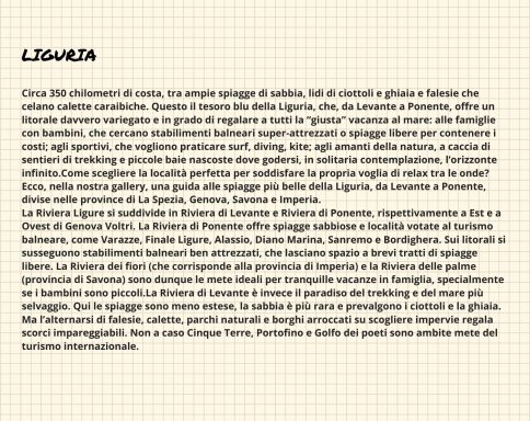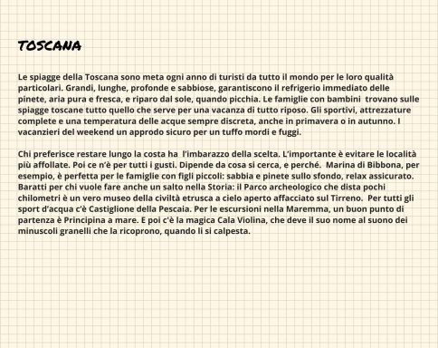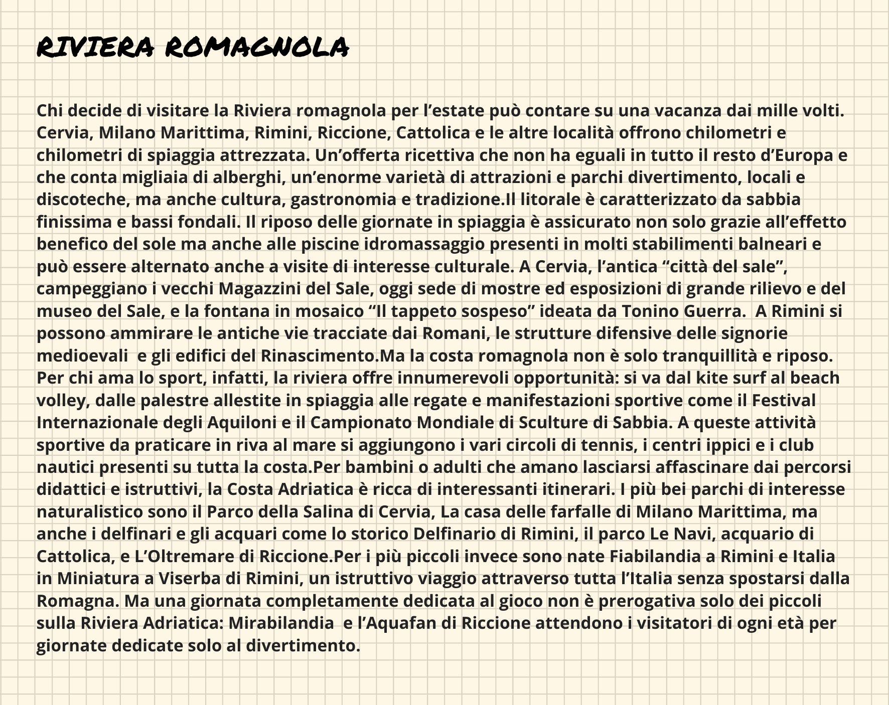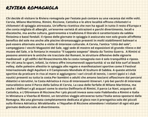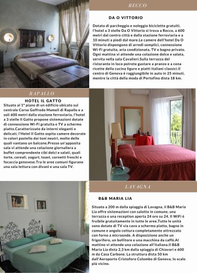 Possibilità di scelta tra varie località ,mare ,montagna e città d'arte.