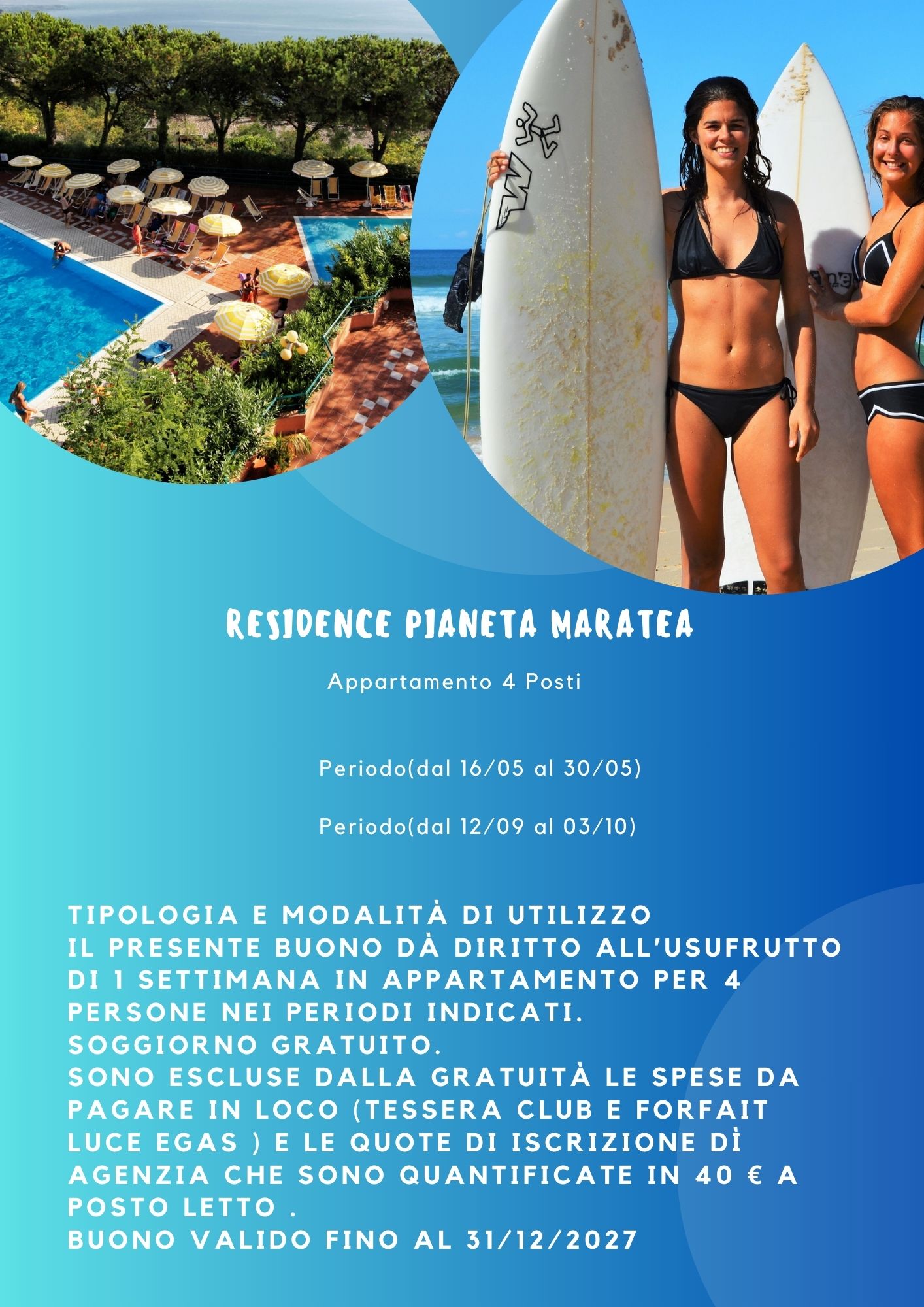 1) Il BUONO VACANZA dà diritto al godimento di una settimana di soggiorno in appartamento a formula residence.