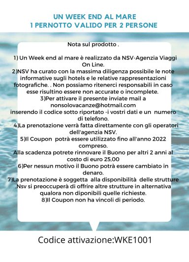 7) ESTENSIONE VALIDITA’ DEL BUONO: La validità potrà essere estesa di un ulteriore anno previo pagamento di € 25,00 + iva contattando NSV al numero 011 9114548 .