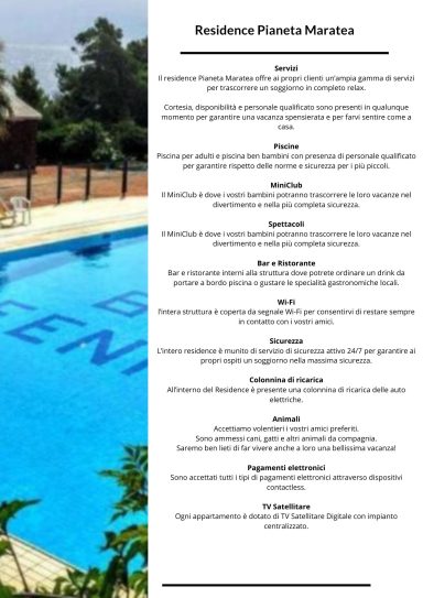 5) Null’altro sarà dovuto al residence a parte il deposito cauzionale che sarà restituito a fine soggiorno alla riconsegna delle chiavi (salvo diversa indicazione riportata sul Buono Vacanza).